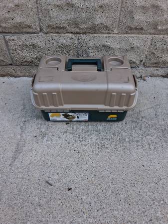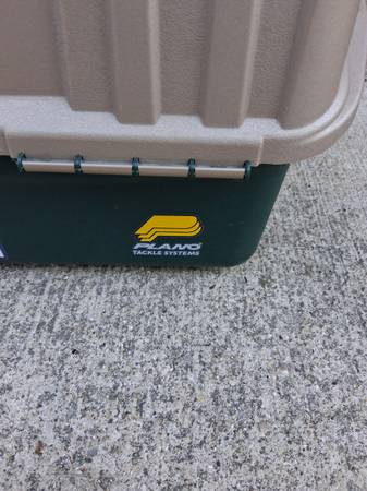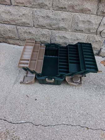 ** NOTHING WRONG WITH IT/ NEVER USED** PERFECT CONDITION have no use for it anymore About 2' x 1' x 1' when closed many compartments and lots of storage, has can/ cup holders on top, clips lock...