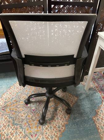 Rolling Desk chair 23.5โ W at arms. Breathable White Mesh Back. Hydraulic Adjustable height. Smoke-Free. Delivery ๐ extra. Habla Espanol, Silla de escritorio con brazos y altura ajustable hidrรกulicamente, con ruedas.