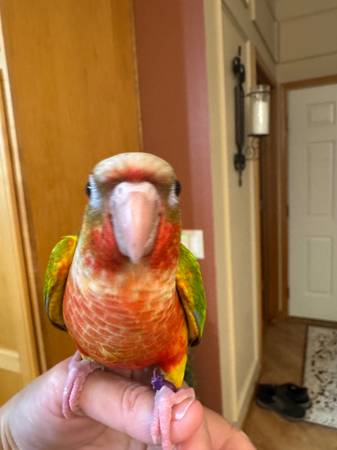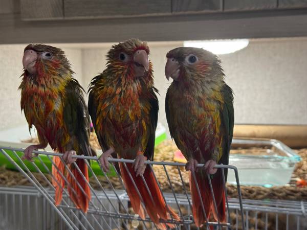 Adorable flock of Pineapple Green Cheek Conures-cuddly and friendly at just eight weeks old! Who’s ready to bring some feathered joy home? 🦜