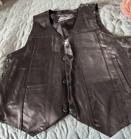 Have very nice black leather vest for sale, is in like new condition, size is large and is made by Event.