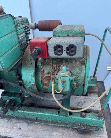 This 1950s 2500 Watt generator “””””looks bad because somebody sprayed some green paint over the whole thing and now it’s chipping and flaking off””””
