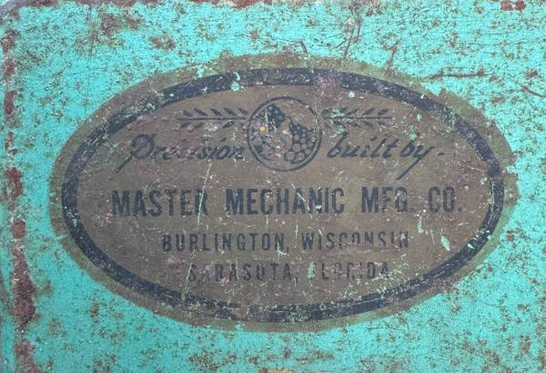 Made by “Master Mechanic Manufacturing Co.” and in Burlington, WI with a reliable Briggs and Stratton motor.