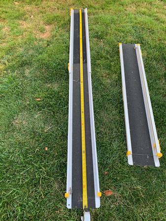 If you message me check spam/junk for a reply cuz that is where many CL adds end up $75 is not for both 7 and 8' ramps. 8' long ramps used for loading a wheelchair. Can handle a sizable load the way...
