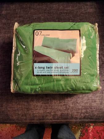 twin sheet set extra long 3pc 200 thread count Green sheet set New. One flat sheet, one fitted, one pillowcase. Cotton and polyester. $20