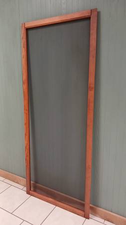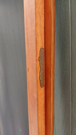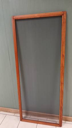 Old Protectoplate Pat. 5-9-36 wood frame screen door for sale. Excellent condition for its age. Has a small hole toward the bottom that can be repaired.