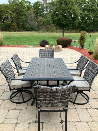 2 years old, very little use, stored inside in winter, cushions always inside unless being used. Excellent condition. Reason selling, going with composite set.