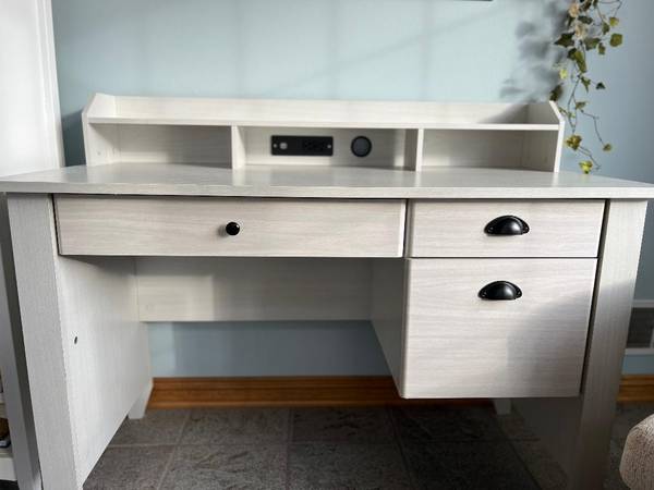 Farmhouse style desk with swivel office chair. Three drawers. Like new condition.