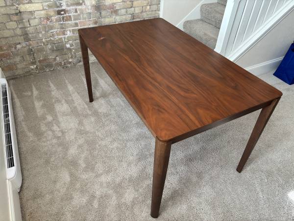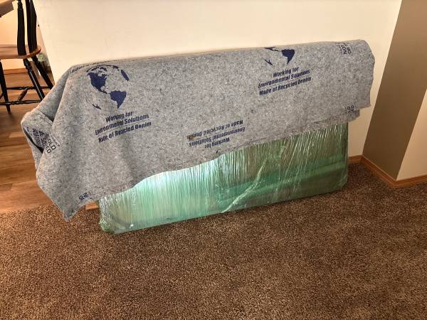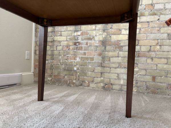 Liberty Furniture Space Savers Satin Walnut Rectangular Leg Table arrived new 2.5 years ago from Colder’s. In need of refinishing from two scratches and two nail polish remover spills. I borrowed a movers blanket from someone to safely store it. The table is thoroughly wrapped and ready to be transported into your car trunk. :)