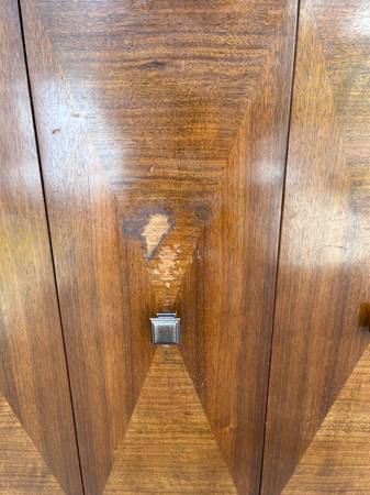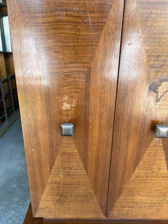 Pretty good condition overall. Top doors have warn spots as shown. Pulls are not original.