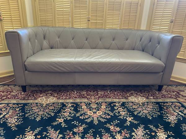 Club sofa perfect for Home or Office. Single bench seat cushion is securely Velcro’d to eliminate slippage/sliding. Fixed back cushion with fully padded armrests give a streamlined style. Smoke-free, pet-free environment.