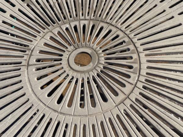 Large Quality Aluminum Patio Deck Dining Table 55β W x 28 1/4βH, Will Not Rust can sit out all winter long. Top does have one area of chipped paint otherwise very good quality table. Can easily be...