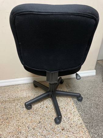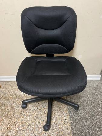 Comfy Rolling Desk Task chair 20.5”W. Black very cushiony. Hydraulic adjustable Height and can rock back. Quality Office Depot. 250 lb capacity. Can adjust to lean back. Excellent Clean Condition. Non-smoking. Delivery 🚚 Extra. Habla Espanol, silla de escritorio hidráulica ajustable. También tengo servicio a domicilio.