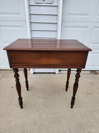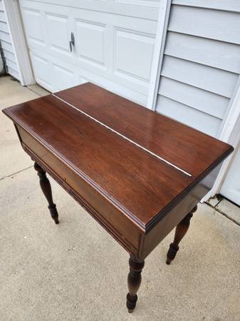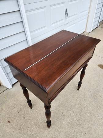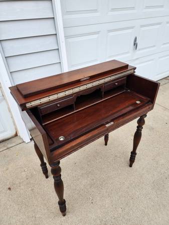 Mahogany spinet desk in excellent condition and from a smoke free home. Delivery available. 32" Wide X 18.5"Deep X 34.5" Tall. Please call 8am-8pm. I do not text.