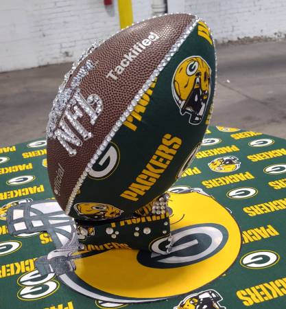 AWESOME! GREEN BAY PACKERS PEDESTAL TABLE + 4 SWIVEL STOOLS & CUSTOM FOOTBALL