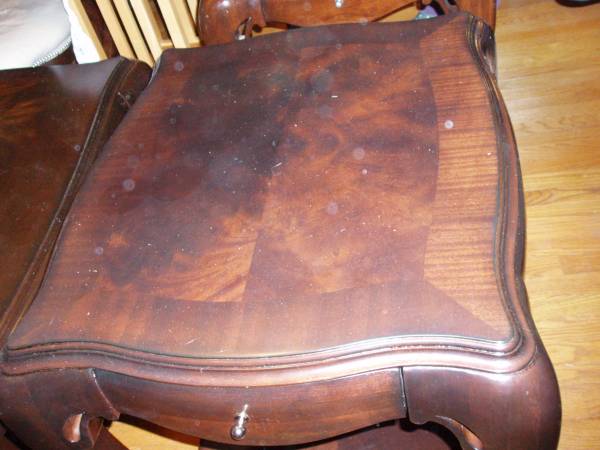 I have some beautiful hardwood, dark stained table set, in very good condition, selling for $1,600.00