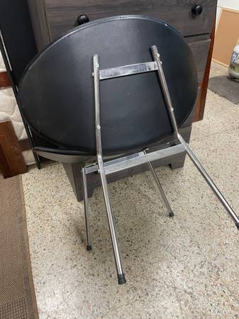 Black Clam Shell Accent Chair, Crome Tripod Legs base. Mid Century Style 27” W x back height 29” x seat height 15.5” x 21” D. Good Clean Condition, Smoke-Free. Habla Espanol