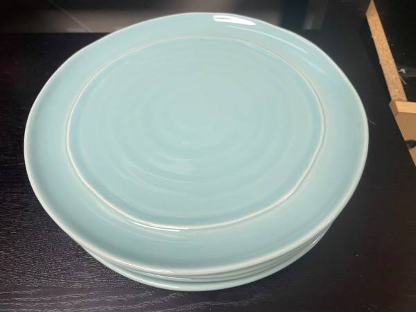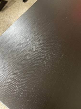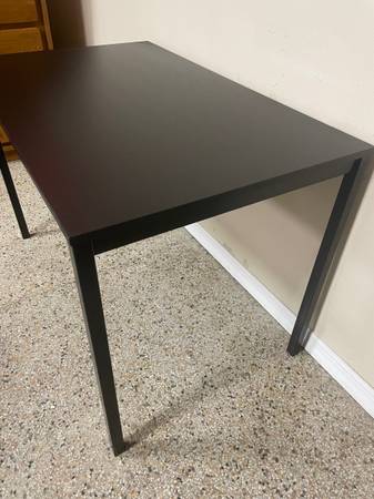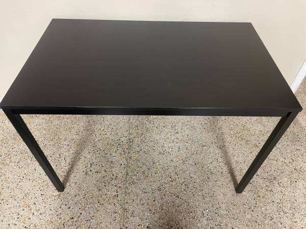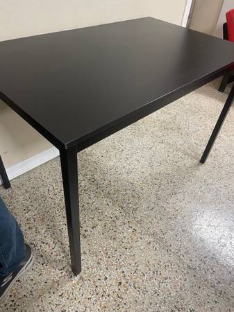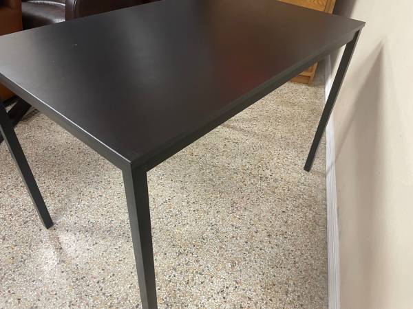 Black kitchen Table can be used as a workstation Desk 43.5"W x 26.5" D Γ 29 1/4"H. Excellent Clean Condition. Smoke-Free. 4 Turquoise plates included if you want. Delivery π Extra. Habla Espanol,...