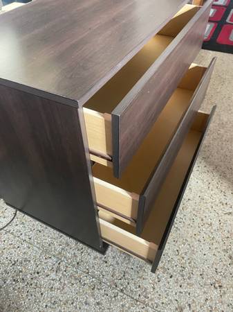 Brown Bedroom Chest Dresser, 3 Drawers open easy. 32 1/4” W x 29 1/4”H x 19 1/4”D. Good Clean Condition, small cosmetic mark on top back . Smoke-Free. Delivery 🚚 extra will fit in a suv. Habla Espanol, Cómoda de tres cajones vestidor, También tengo servicio a domicilio.