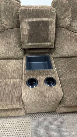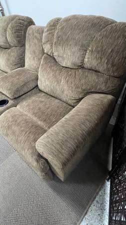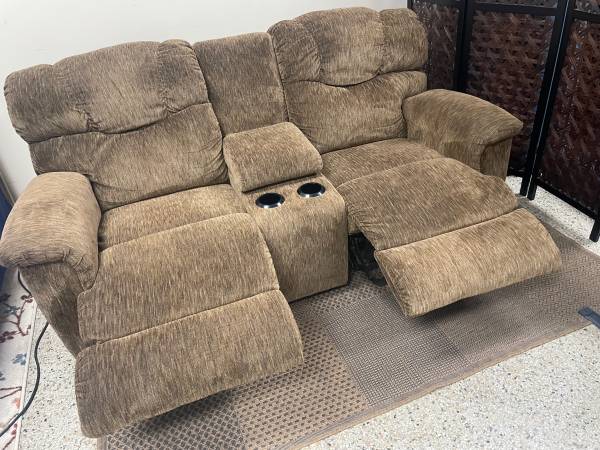 Electric Double Loveseat Sofa Couch with 2 Recliner chairs and console in between. 78.5” W x 40" H x 38" D. Good clean condition, smoke-free. Included free magazine holder & 1 side wood end table if you want. Delivery 🚚 extra, separates in 3 pieces can put it in the SUV, easier to get thru doors and upstairs. Habla Espanol, Sofá reclinable doble limpio. También tengo servicio a domicilio.