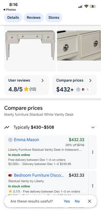 Elegant Flip Up Mirror Vanity set 55βW velvet lined & stool π extra...