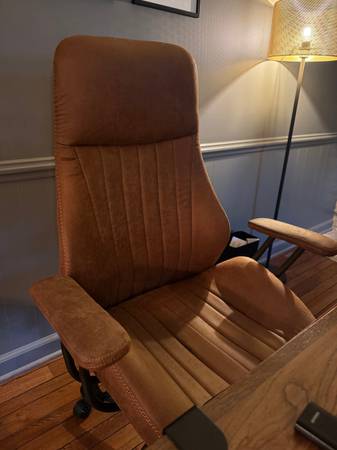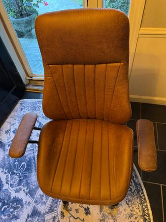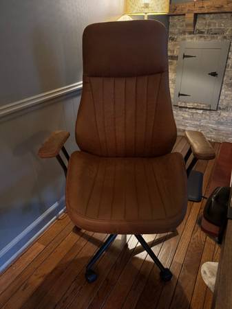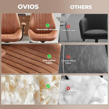 Ergonomic Home Office Chair, Mid-Century Modern Faux Leather Chairs with Padded Armrests, Comfy High Back Swivel Rolling Executive Computer Armchair (Brown, Suede Leather)