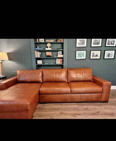Amazing leather couch. In great condition. We love it! We are selling it due to downsizing and it won't fit in the new place. No scratches. Dimensions: 119" W x 39" D x 65" D (chaise) x 37" H