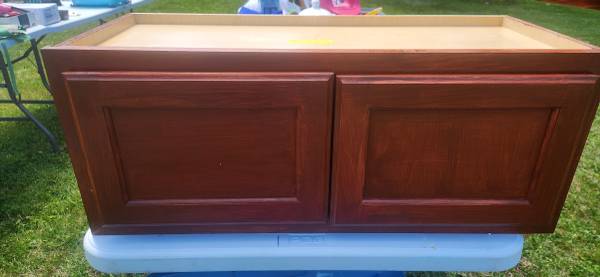 Beautiful Hampton Bay wall bridge cabinet. 30" x 12" x 12" Sturdy cabinet in excellent condition. Meet in public. Cash only. This sells for 140. at Home Depot.