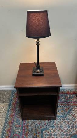1 Ikea Brown Small Bed Nightstand / End Table 22” H x 16.5”W x 15 3/4” D. Black lamp included free if you want. Very good Clean Condition. Habla Espanol