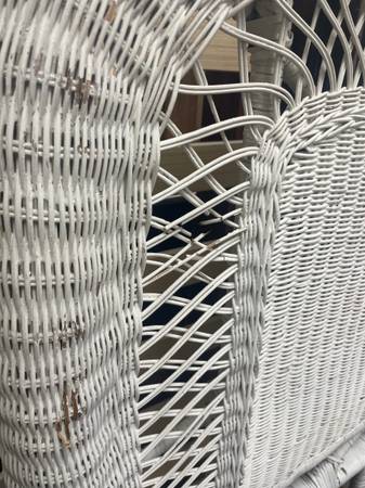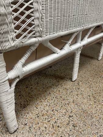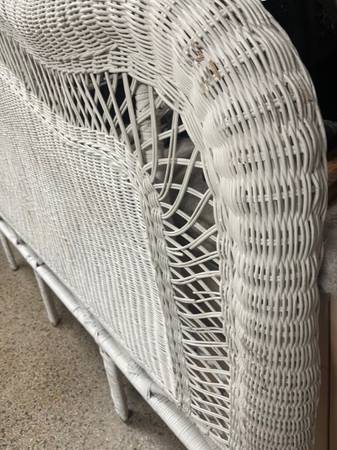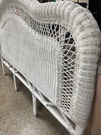 King White Real Wicker Vintage Bed Headboard 79β W x 54.5β H x 3β D. Attach to a wall or prop up. Does not attach to a frame. Good Clean Condition, Smoke Free. Could use some touchup paint in a few...