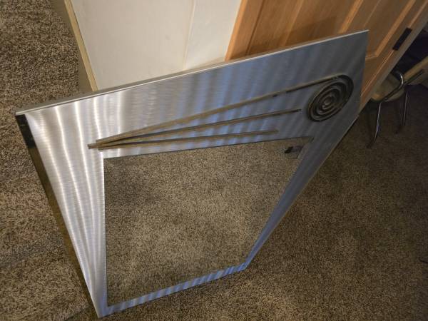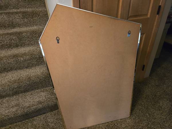 Large Art Deco Stainless And Brass Beveled Wall Mirror 36 x 46
