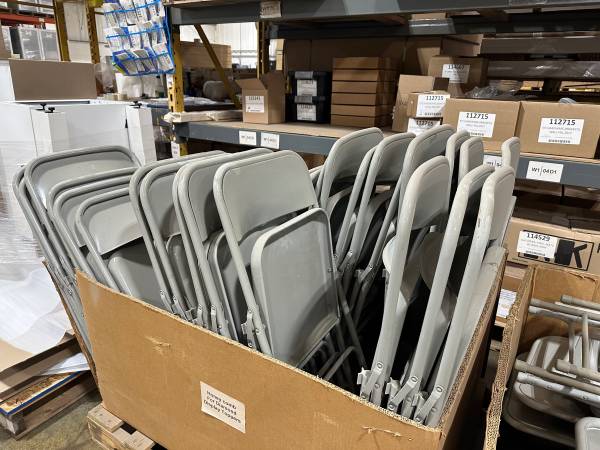 44 Metal Folding Chairs, Used, $10 per chair. Contact Lizzy at ex. 403