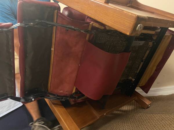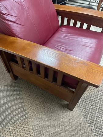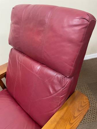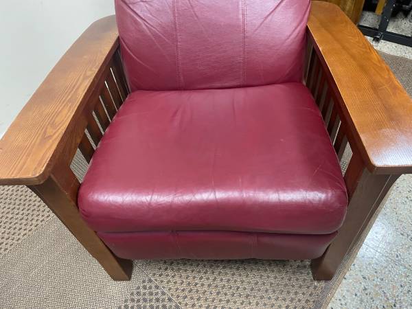 Mission pushback Red Real Leather Wood frame recliner Arm chair.33.5β W x 41 H x 37 D. Soft, Good clean condition, smoke-free. Included free mission Wall Mirror if you want. Delivery π extra. Habla...