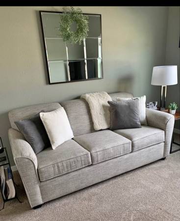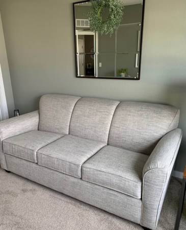 Perfect condition, like new sleeper sofa. Used one time, decided to convert space to bedroom with real bed. Queen 80” wide Couch when closed - 37” deep Length when open - 80” Seat height - 19” Arm...
