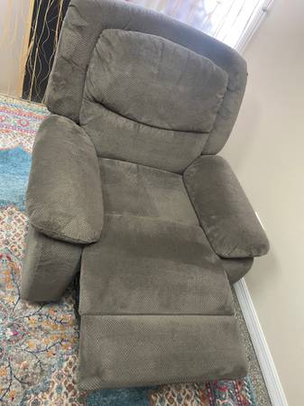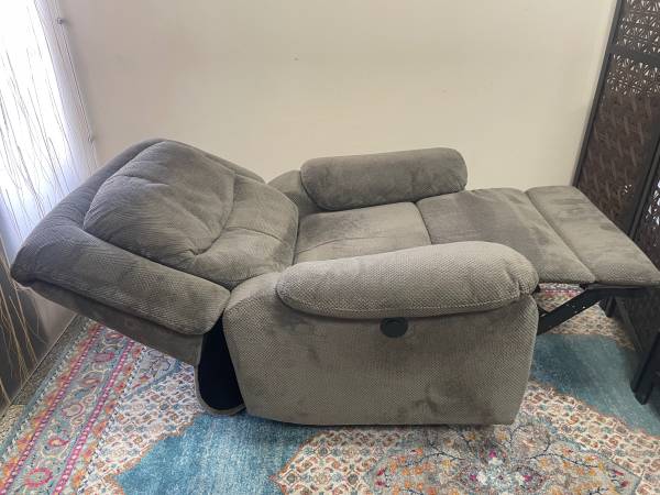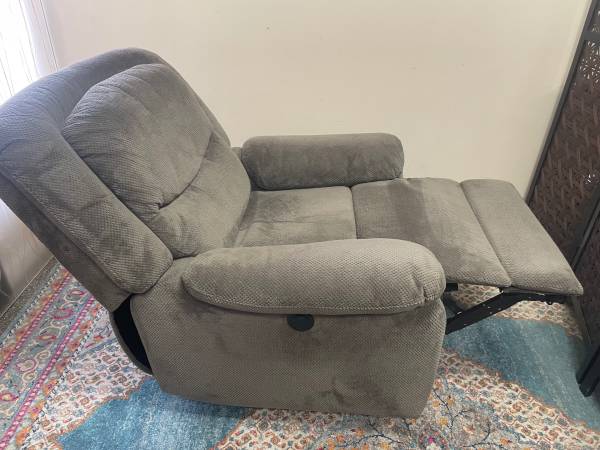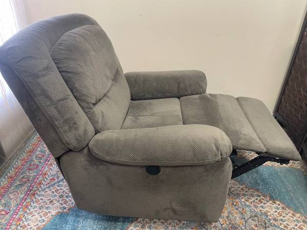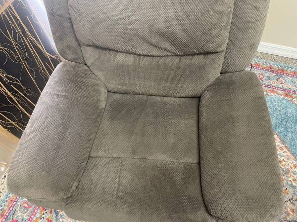 Serta Gray Electric Push-Button Power Recliner Chair with Deep Body Soft Cushions. Back removes to transport upstairs easy. 39”W x 31" D x back height 40” Serta CR-47714. Good condition, had a dog vacuumed. Smoke-free. Gray Throw blanket included if you want . Delivery 🚚 extra. Habla Espanol, Sillón reclinable eléctrico gris. También tengo servicio de entrega a domicilio.