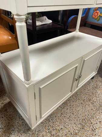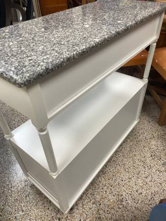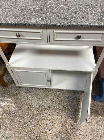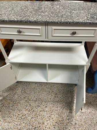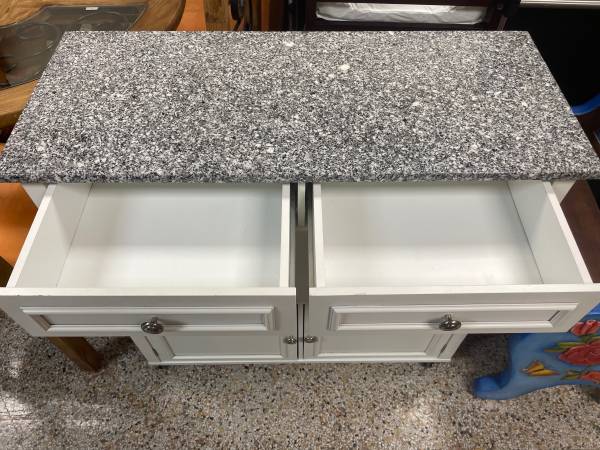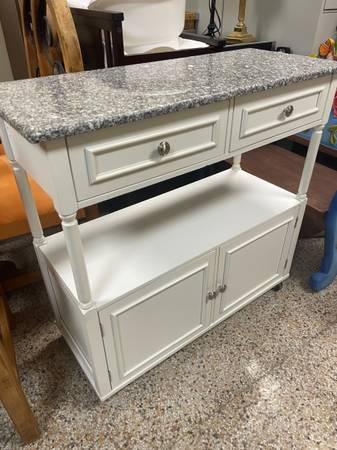 3 Ft Tall Rolling Kitchen Island, Real Granite top gray blend, 2 small Drawers for cutlery and utensils. Wheels Lock in place. 35.5β H x 37β W x 15 3/4β D. Sandra Lee Brand. Good Clean Condition,...