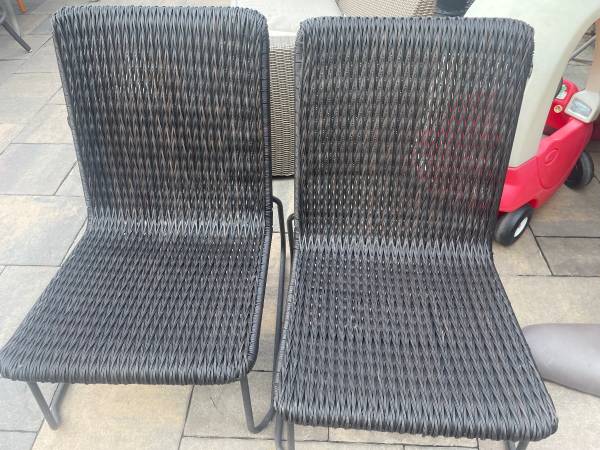 Set of 2 All Weather Rattan Chairs, low profile, Stacking for storage. Good clean condition. Indoor or Outdoor patio porch deck. Delivery 🚚 extra. Habla Espanol