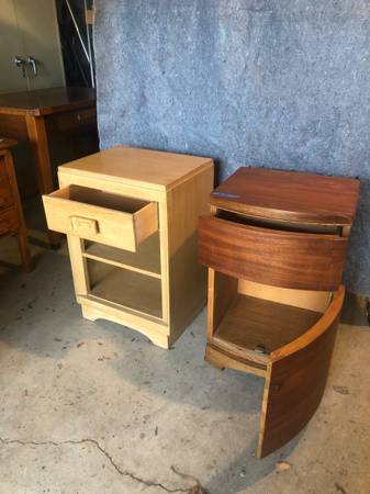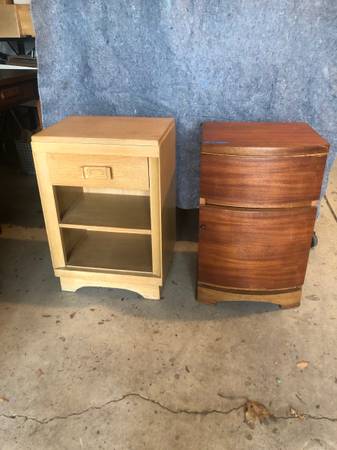 Two small bedside cabinets. $25 each/your choice. Nicely restored. One is MCM and the other, contemporary. Approximately 17Wx14Dx26H Click on “more ads by this seller” to see other items I have for...