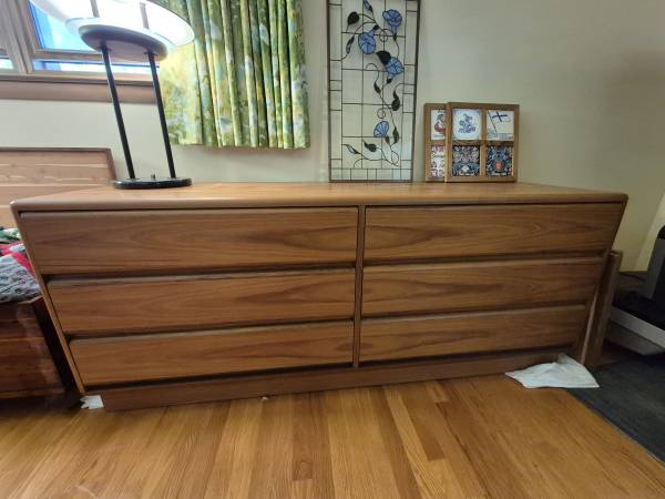 Teak Mobican 6-Drawer Double Dresser Made in Canada 72x20x29" Available for early sale- South Milwaukee Estate Sale Dates TBD Smoke-free, clean home. Previous owner had cats. See photos for...