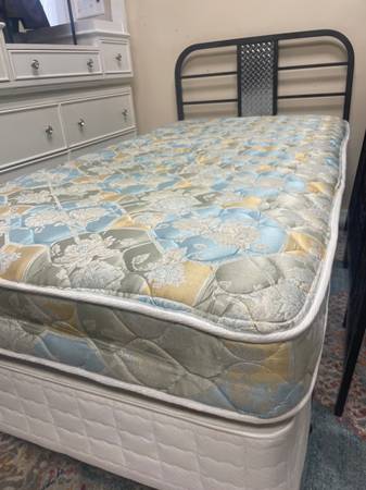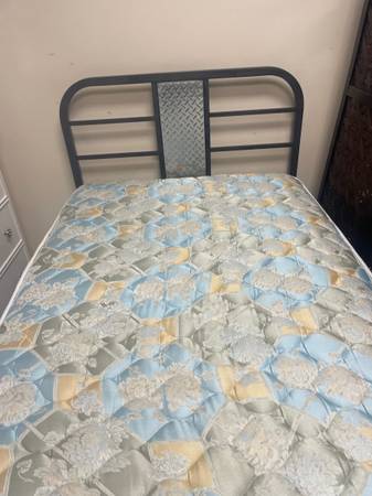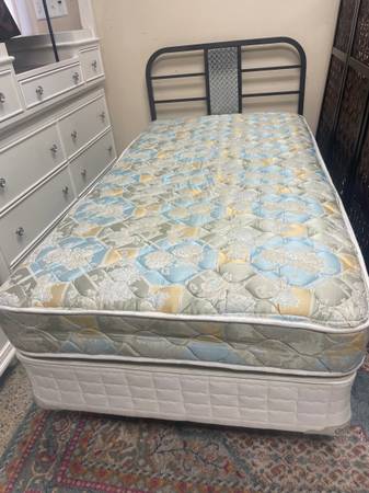 Twin Bed Metal Headboard, Reversible Mattress, Boxspring & Rails. Good Clean Condition. Smoke-Free. Delivery & Extra. Habla Espanol. También tengo servicio a domicilio.