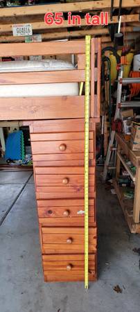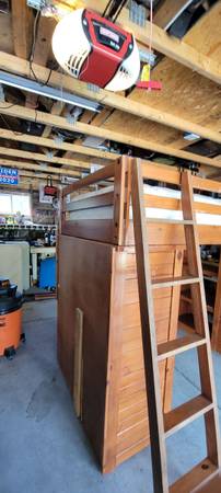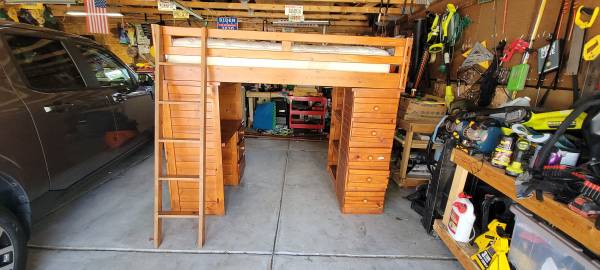 Used loft bed, same size as a twin bed, 65 inches tall, desk, drawers and shelves below, the bed frame does come off and can be taken apart. The desk and shelves/drawers do not 50.00 obo, local...