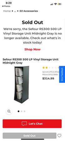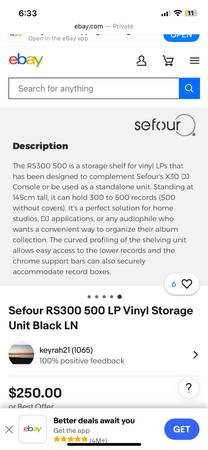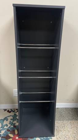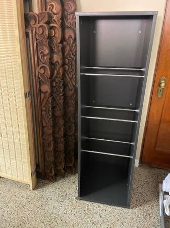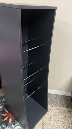Vinyl LPs Storage Shelf, Midnight Gray can hold 300 to 500 records (500 without covers). 56.5” H x 17.5" W x 20" D Curved Profile gives easy access to records. Sefour RS300 500. Chrome Support buyers can accommodate Record boxes. Good clean condition, smoke-free. Delivery 🚚 extra. Habla Espanol