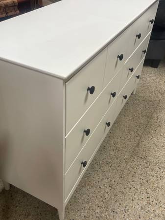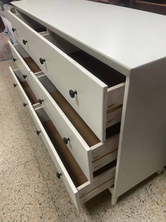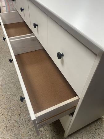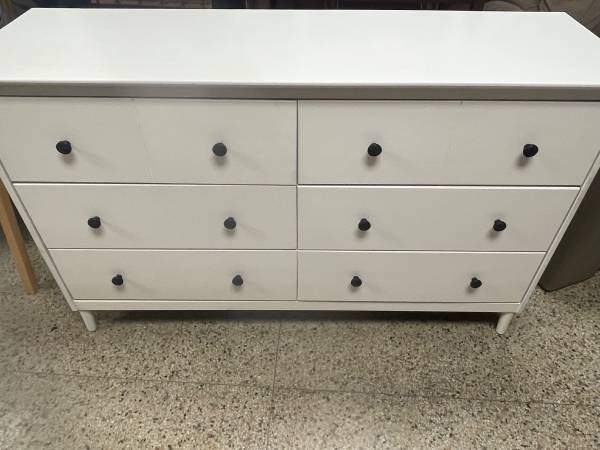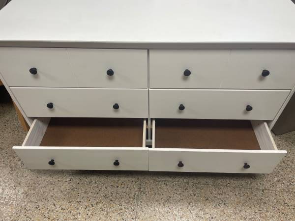 Walker Edison Spencer 6 Drawer Wood Chest Dresser, White Finish. 57” W x 35" H x 18" W. Good Clean Condition, smoke-free. Retails over $400. Delivery 🚚 extra. Habla Espanol, Cómoda de madera con seis cajones, todos se abren fácilmente. También tengo servicio de entrega a domicilio.