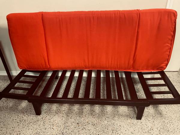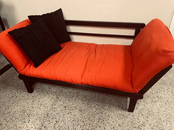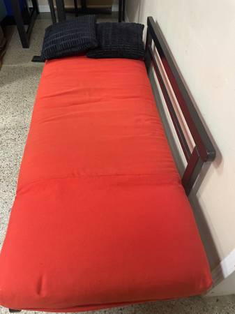 World Market Wood Studio Daybed Sofa. 61β W x 32β H x 30β D. Ends Fold Down to bed 80β Long. Good Clean Condition. Just removed couch cushion to wash. In crevice has a rip on seam not seen. Black...