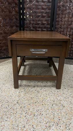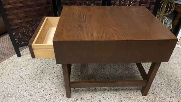 1 Wood Bed nightstand with Drawer Or Side End Table. 26โ D x 20โW x 20.5 H. Has a discoloration mark towards back top. Delivery ๐ extra. Habla Espanol, 1 Mesita de noche/mesita auxiliar de madera...
