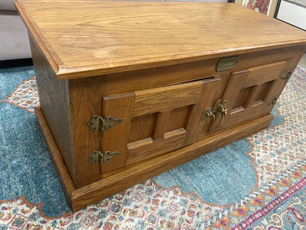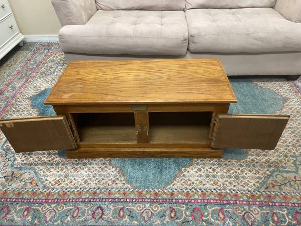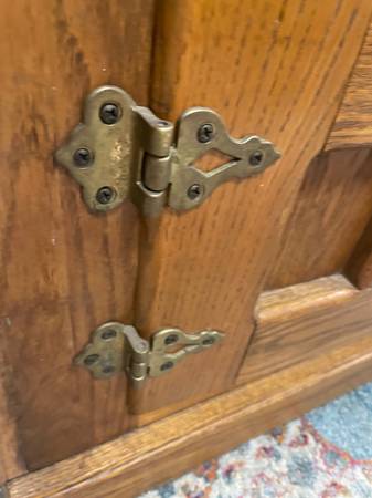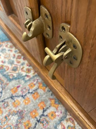 Real Wood TV Stand cabinet. Wood TV stand 38 1/4” W x 18” H x 17 3/4” D. Vintage White Clad Furniture, one brass closure latch broke took photos. Good Clean Condition. Non-smoking. Delivery 🚚 Extra. Habla Espanol Estante de madera para TV, La entrega es adicional