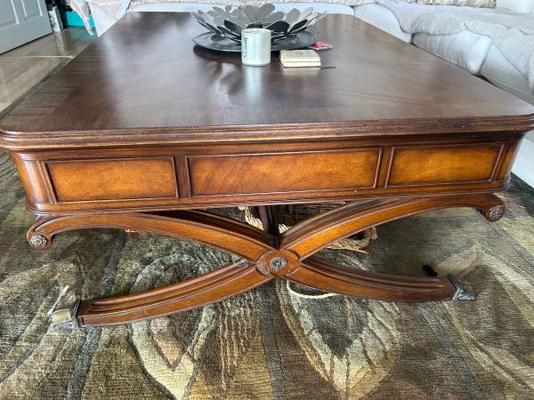 Vintage Stickley coffee table, in very good condition. Measures 54-1/2" long (surface) x 40-1/2" wide (surface) x 10-1/4" high. Center drawer. Cat friendly, smoke-free home. Will accept reasonable offers. No delivery or shipping, cash only, pick up in Muskego, WI. Cash only.