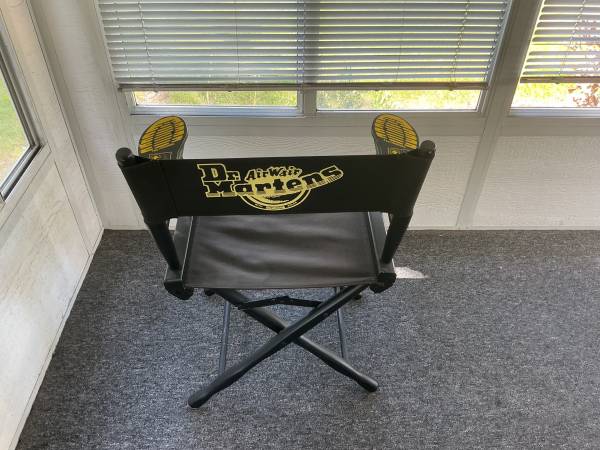 For sale, rare piece of Doc Martens advertising merchandise. Black Doc Martens directors chair. Received the chair from a Doc Martens sales rep back in the 90s. Please see photographs for condition. Happy to answer any questions or send additional photographs. Cash and local pick up only. price is non-negotiable. If interested, please call the telephone number in the reply section phone calls only please. If you text me, I will call you back if you email me please include a telephone number and I will call you back. No telephone number no response I repeat no telephone number no response. Thank you.