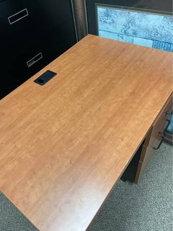 Techline small sturdy desk 3 drawers computer stand attached. Solid well built piece Fairly heavy Doing business purge. Pick up from business office. Near bluemound and barker in Brookfield....
