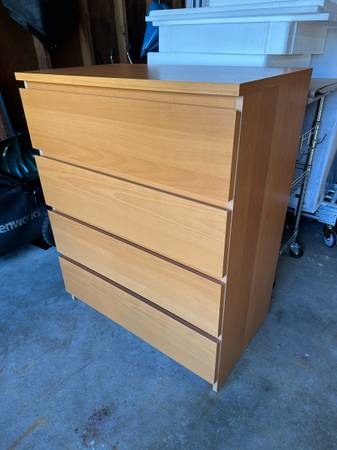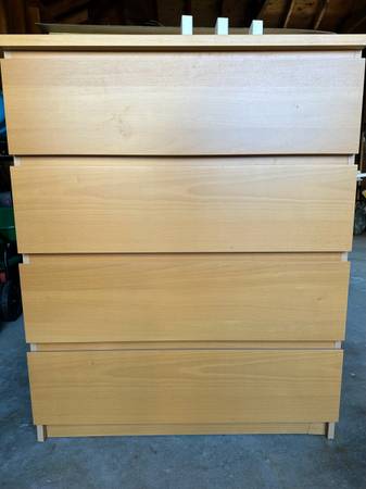 The drawer chest is 39.5” tall, 32” wide, and 19” deep. It is in very good condition. There is one minor flaw at the bottom of the chest (please see pictures). The drawers are 6” deep, and will hold a lot of clothes. They are not intended for keeping something heavy. Text me if interested.