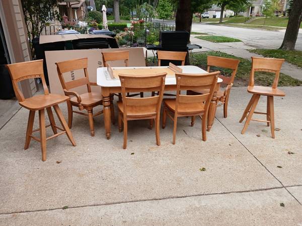 Beautiful full dinning room set by Canadel furniture,6 chairs and two high top counter chairs with hutch and two base cabinets.